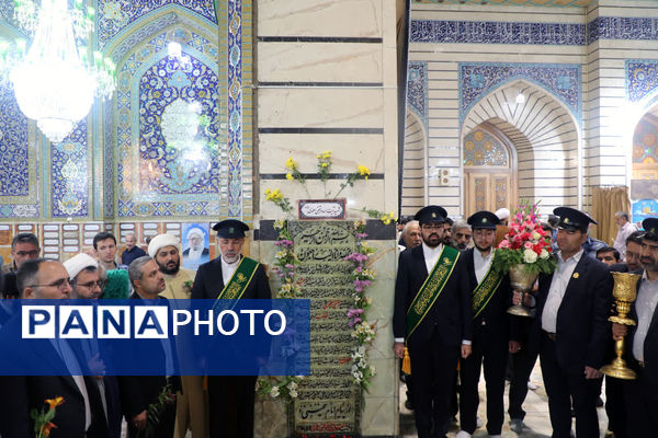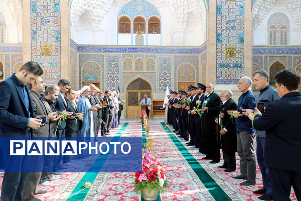 قم (پانا) - جمعی از فرهنگیان و کادر اجرایی آموزش و پرورش استان قم به مناسبت هفته معلم، در آیین خطبه خوانی حرم حضرت معصومه(س) شرکت نموده و به مزار شهید مطهری در حرم مطهر و سایر شهیدان والامقام در گلزار شهدای علی بن جعفر(ع) ادای احترام کردند.
