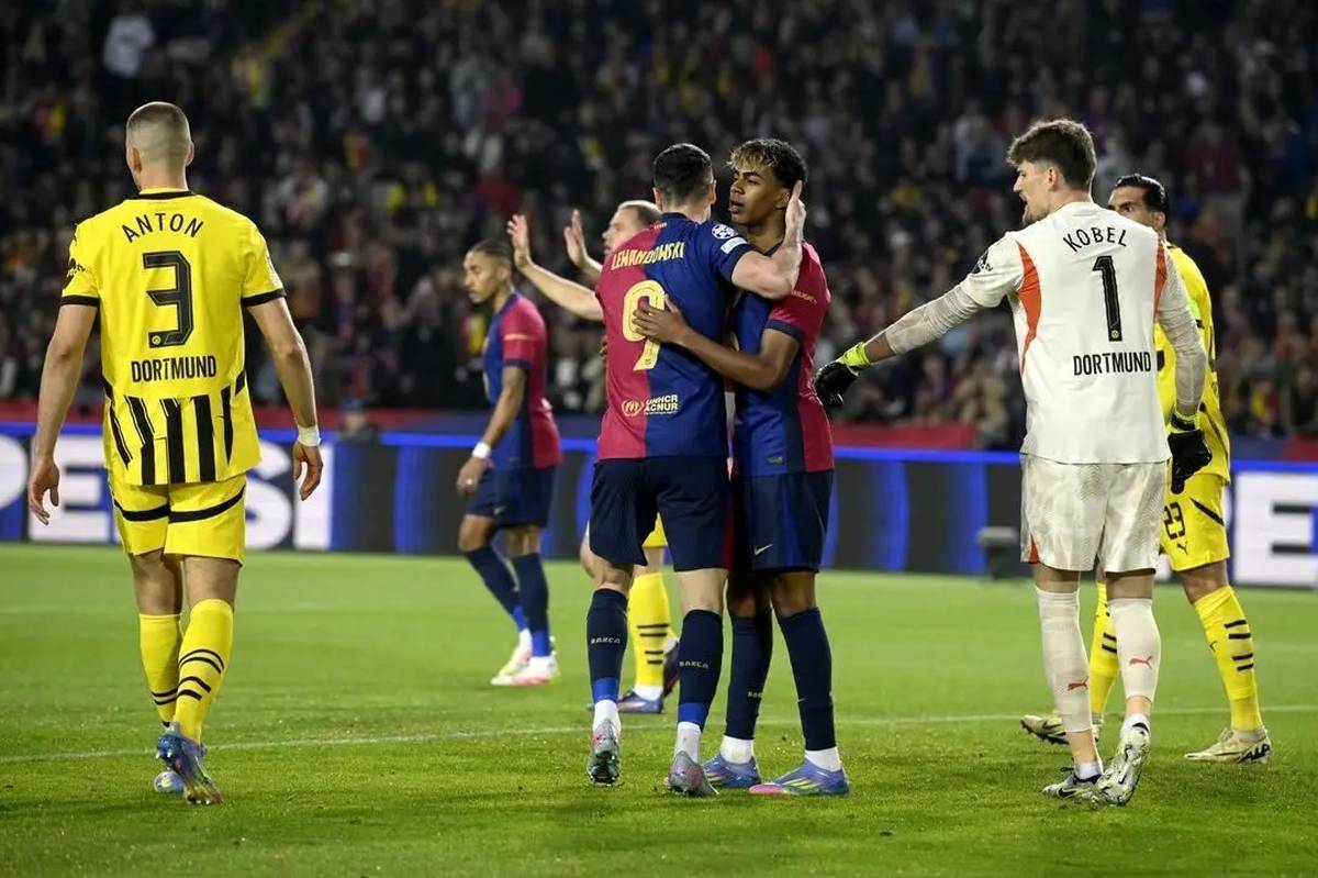 در ورزشگاه المپیک مونتجوئیک، تیم بارسلونا به مصاف بوروسیا دورتموند رفت و با نمایشی قدرتمند موفق شد میهمان آلمانی خود را با نتیجه ۴ بر صفر شکست دهد. گلزنان بارسلونا در این مسابقه رافینیا، که در دقیقه ۲۵ گل اول را به ثمر رساند، روبرت لواندوفسکی که دو گل در دقایق ۴۶ و ۶۶ زد، و یامال که در دقیقه ۷۷ گل چهارم را زد، بودند. این پیروزی به معنای تسلط بارسلونا بر دیدار رفت بود و هواداران این تیم را برای بازی برگشت خوش‌بین کرد.