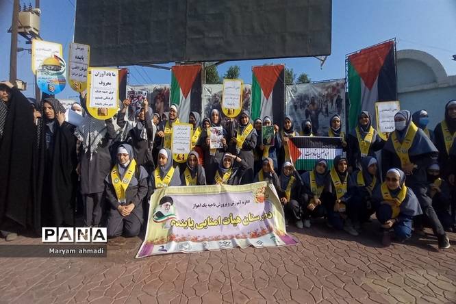 حضور دانشآموزان دبیرستان پاینده در تجمع حمایت از کودکان فلسطینی
