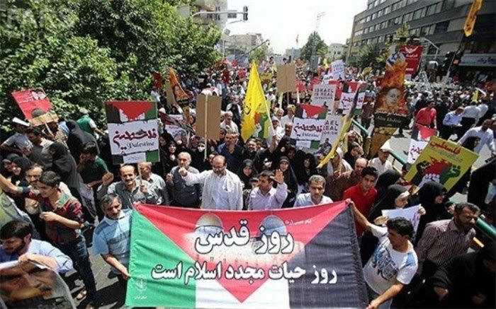 مراسم راهپیمایی روز جهانی قدس جمعه ۱۰ خرداد ۱۳۹۸ با حرکت مردم روزه دار به سمت دانشگاه تهران برگزار شد.